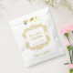 Beautiful wedding favour bags feature an elegant vintage ornate gold filigree frame with 4 lines of customisable text on white background - fill in with wedding couple's details.