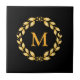 Ornate Golden Leaved Roman Wreath Monogram - Black Tile