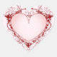 A pink heart surrounded by beautiful red and pink ornate scroll-work and lots of little red hearts.