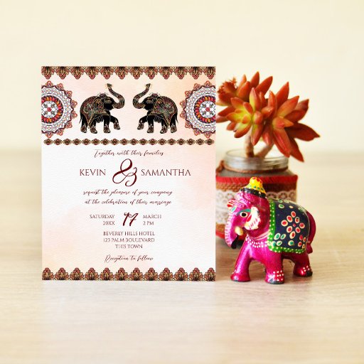 Ornate Indian elephant Indian wedding personalised template stickers.