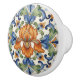 Ornate Iris Flower Blue Orange Green Floral Ceramic Knob