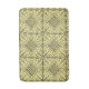 Pattern features ornate squares with centre lattice diamonds. Black on light yellow background