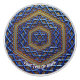 A copper, blue and gold 3D fractal image of a Magen David (Star of David) resembling an intricately-textured metal panel. Customise by adding your own text.