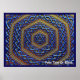 A copper, blue and gold 3D fractal image of a Magen David (Star of David) resembling an intricately-textured metal panel. Customise by adding your own text.