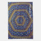 A copper, blue and gold 3D fractal image of a Magen David (Star of David) resembling an intricately-textured metal panel. Customise by adding your own text.