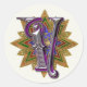 Round sticker in a parchment colour, with a very ornate monogram letter V. Great as a finishing touch to any letter, card or invitation's envelope.
