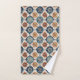 Bring a touch of global elegance to your space with this stunning geometric pattern in shades of teal blue, red and gold, inspired by traditional Moroccan and Mediterranean tiles. The intricate bath towel design showcases symmetrical shapes and ornate details, evoking the rich history and artistic craftsmanship of these regions. Whether used in home decor, party supplies, or personalised gifts, this pattern adds a sophisticated, worldly charm. The design is part of an exclusive collection, perfect for anyone looking to infuse their home or events with timeless beauty. Search ID1078 to see other products in this unique design set. Note: design adapted from generative content.