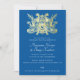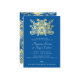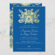 Modern Golden Paisley Mehndi, engagement party invitation. Card features, princess blue colour backgrounds and decorative Mehndi art. Elegant typography design style template.
