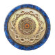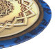 An ornate metal Passover matzah tray with a 3D fractal Magen David (Star of David). The plate ais superimposed on a blue-toned background image with multiple Magens David. Hebrew text on the plate reads, "מצה" (matzah) and "פסח שמח" (pesach sameach - Happy Passover).