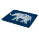 Stunning ethnic art cutting board with decorative henna tattoo style elephant on midnight blue background.