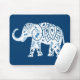 Stunning ethnic art mousepad with decorative henna tattoo style elephant on dark blue background. Option to customize background color.