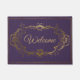 Chic front door mat done in purple with gold tone graphics of an antique looking ornate frame, in the middle. Welcome text is ready to personalise to read what you want. What a lovely way to welcome guests to your home.