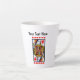 This Latte mug has an ornate and colourful heart queen playing card on the front with rows of bright red hearts above and below it.  Customise your text at the top with the template.