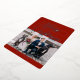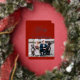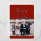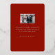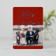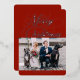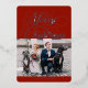 An elegant Christmas design with "Merry Christmas" in an ornate calligraphy script with silver foil. The couple's special photo is in the front with their name underneath, also in silver foil. (There is a choice of different colour foils.) The background colour is red, and is customisable. The backside has a smaller photo and a customised message in a light grey - colour only (there is no foil on the backside).