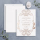 Introducing our beautiful ornate rose gold foil floral line art monogram wedding invitation! This gorgeously styled invite features a nod to art nouveau, with its ornate border and monogram initials. The perfect way to set the tone for your big day, this invitation is sure to impress your guests.