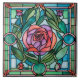 Ornate Rose Leaves Wreath Stained Glass Style Tile