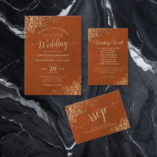 Rust Orange with Gold Lace Elegant Wedding SuiteDesigned by Cat Ritchie