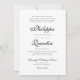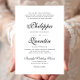 This classy formal wedding invitation features traditional text in elegant, ornate black script and small capital fonts on a white background. The reverse is solid black.