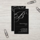 The letter "B" rendered in an ornate script bleeds off the edges of this striking black business card making a stylish, versatile look for a hairdresser, image consultant, life coach, or stylist among many others. Don't like the black background? Choose the "Customise It" button option and change the background colour as desired. Available in alternate monograms.