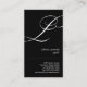 The letter "L" rendered in an ornate script bleeds off this black business card making a stylish, versatile look for a hairdresser, image consultant, life coach, or stylist among many others. Don't like the black background? Choose the "Customise It" button option and change the background colour as desired. Available in alternate monograms.