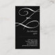 The letter "Z" rendered in an ornate script bleeds off this black business card making a stylish, versatile look for a hairdresser, image consultant, life coach, or stylist among many others. Don't like the black background? Choose the "Customise It" button option and change the background colour as desired. Available in alternate monograms.