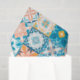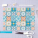 Ornate tiles in blue and orange tissue paper