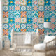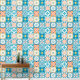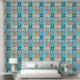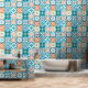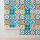 Ornate tiles in blue and orange wallpaper