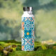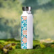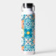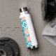 The bottle looks even better in real life. The ice cubes I put in lasts all day! I have my bottle with me all the time. It's summer and having something cold to drink feels amazing. With this bottle I always have something super cold. I have only tried the hot drink once and it lasted a long time as well. The color blue is a navy blue and the white printed on it is vibrant. It printed perfectly. I love my personalized smile water bottle.
