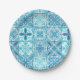 Ornate tiles in blue and white paper plate