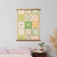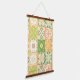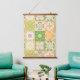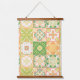 Ornate tiles in green and yellow hanging tapestry