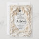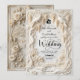 Transport your guests to a timeless era with this sophisticated design featuring a romantic garden scene in a stunning monochromatic palette.This design features a highly detailed, digitally created illustration of a formal garden landscape. The artwork simulates the look of a sculpted ivory carving or bas-relief, utilizing shadow and light to create a faux 3D appearance in shades of cream, beige, and off-white. The scene depicts a romantic bridge surrounded by lush hanging wisteria, blooming roses, and two white doves in flight. The text is presented in a stark black traditional serif paired with elegant calligraphy script for high contrast and readability against the light background.