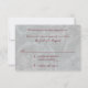 You can personalise the text on this ornate and elaborate Victorian masquerade ball wedding RSVP reply card. The colours are burgundy and simulated silver grey. The design features a masquerade ball mask with feathers. The text on this reply card is fully customisable. You can change the text using the personalise option. For more extensive changes, such as font, font colour, or text layout/placement, use the customise it option. Note: This is a flat printed design with no raised or 3D embellishments.