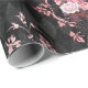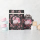 Pink and black floral themed gift wrap with harlequin pattern.