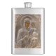 Jesus Christ and his mother Mary on old Russian icon. Silver look. Photography.