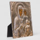 Jesus Christ and his mother Mary on old Russian icon. Silver look. Photography.
