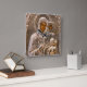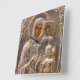 Jesus Christ and his mother Mary on old Russian icon. Silver look. Photography.
