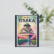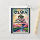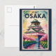 Osaka Japan Castle Illustration Travel Art Vintage Postcard