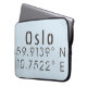 Modern, urban graphic features latitude and longitude coordinates of Oslo, Norway