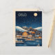This travel postcard, in digital illustration style, is inspired by the city of Oslo, Norway.