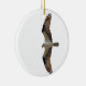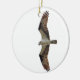 Photo of an osprey flying against a white background, its wings outstretched in flight. The osprey, which is also called a sea hawk, fish eagle or fish hawk, is hunting by flying over the ocean, looking for fish. This raptor picture can be printed on many different products.