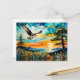 Osprey in flight over wildflowers at Sunset Postcard