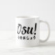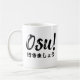 An oriental brush typography design "Osu!", used in Karate, BJJ, MMA, Kickboxing, and other schools or dojo, with the phrase "let's go" in the Japanese language.