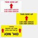 This is a set of 3 warning labels that can turn any object into so funny conversation piece. The first two labels read "This side up" and—when turned upside down—"Other Side Up!!" The third label says "OH, NO! If you can read this, it's upside down."