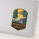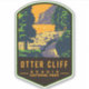 A vintage travel badge design of Ocean Path with the Otter Cliff in Acadia National Park, a recreation area on Mount Desert Island, Maine United States.