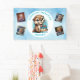 Blue Otter themed boy's first birthday party personalised name, age and photo banner with otter and name. cartoon otter holding a birthday cake.