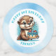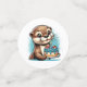 Blue Otter themed boy's first birthday party confetti with otter and name on one side and child's photo on the other. Cute cartoon otter holding a birthday cake.