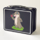 This is a standard metal lunchbox that appears to work just fine. We designed this box ourselves with an uploaded photo and custom text on the front and back. It looks absolutely beautiful except the front of the lunchbox is not centered like it shows in the photo. The print borders don't align with the inset flat part of the box where the preview photo online showed it perfectly centered in there. The back looks nice and centered though.
