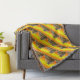 A quality printed throw has its advantages. This is a much finer weave throw than its loopier cousins, and though lighter, it is worth the investment for custom room accessorizing. The back is much prettier than the typical brown, and the fringe on the long sides very vivid, the selvage nicely done. Before photographing, I washed the throw in cold water, delicate, with a thicker woven throw the same size. On tumble dry low, this throw was dry in half the time as the other. This is a very practical quality if you use throws for furniture covers or to wrap up in frequently. The sleekness of the fabric makes it a great layer for accenting or protecting without the feeling of sitting on too much stuff. Perfect for napping or when you feel a light chill coming on. The color printing is beautiful and on this fabric, matched the design and color of my Photoshop image. This is an advantage for blending room fabrics and colors. The fringe on the short sides prints the colors from the design image and therefore varies from the side fringe. I streaked a white fractal line through the plaid pattern to give the illusion of weaving. This printed as crisp as an illusory thread, and put some white in the short side fringe, showing another advantage of print vs loomed- for artistic purposes, line lines, detail, and color integrity can be planned and preserved. My loomed throws have color limitations and more of a needlepoint texture. Print throws reproduce an exact image. The throw felt a little stiff straight out of the package, but this went away in the first delicate wash. Of course I searched the wash water for ink or bleeding and there was none.