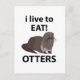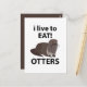 Otters I Live To Eat Funny Otters Postcard original design by Nisha Prabhu. Dive into a world of whimsy with our "Otters I Live To Eat" postcard! Perfect for animal lovers and those with a taste for humour, this delightful design captures the playful spirit of otters enjoying their favourite snacks. Whether you’re sending a quirky greeting to a friend or just looking to brighten someone’s day, this postcard is guaranteed to bring a smile! Crafted with vibrant colours and a charming illustration, it’s ideal for any occasion. Use it to share a laugh, invite someone to dinner, or simply spread joy. Let these adorable otters remind you and your loved ones of life’s simple pleasures—good food and fun times!