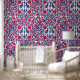 This luxurious wallpaper features a pattern based on Ottoman china with flower motives and navy blue and red colours.